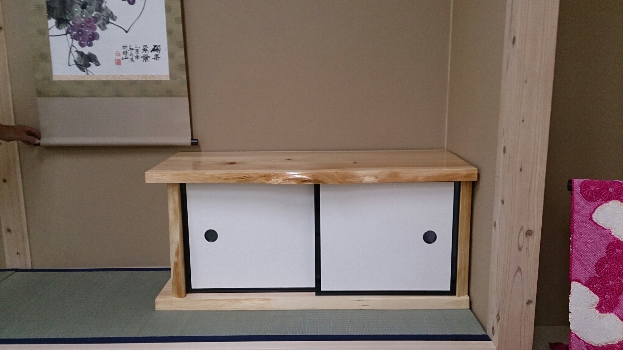 床の間の、置型地袋の依頼があり夜なべで作りました。 喜んで頂きました。